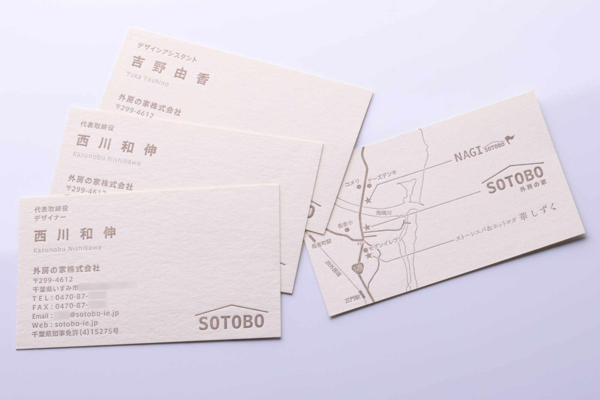 印刷は両面とも活版印刷1色でDICの特色指定をいただきました。