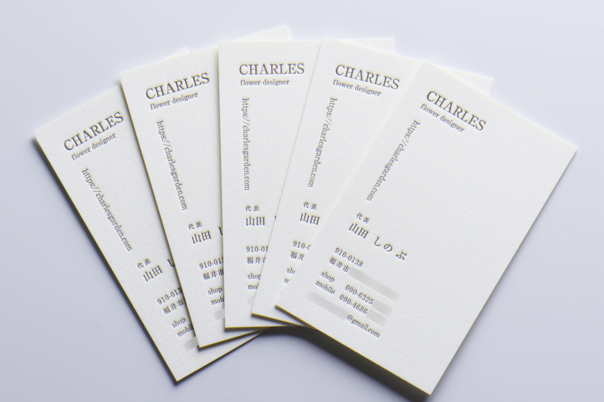 特AクッションFを使ったお名刺を活版印刷で請け賜わりました。